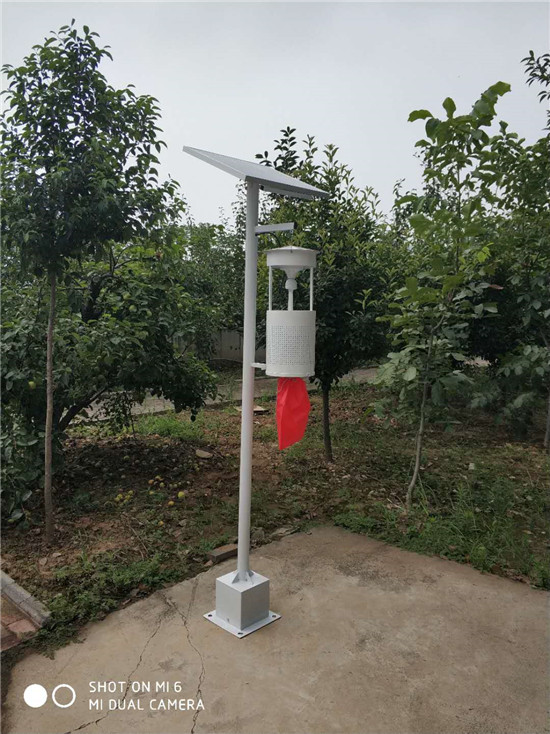 太阳能杀虫灯是利用害虫的较强趋光、波、色、味特性,将光波设在特定范围内,近距离用光,远距离用波加以色和味诱杀成虫,灯外配以电压网触杀,使害虫落入灯的袋子中,以达到杀灭成虫,控制为害的目的。另一方面它选用了能避开诱集天敌的光源、波长和波段,从而又达到了保护天敌的效果。每只灯可控面积60亩,辐射果园面积约5000亩,每灯每日可诱捕害虫900余只,降低害虫落卵量70%左右,用药次数减少6次,药剂防治减少65%左右。