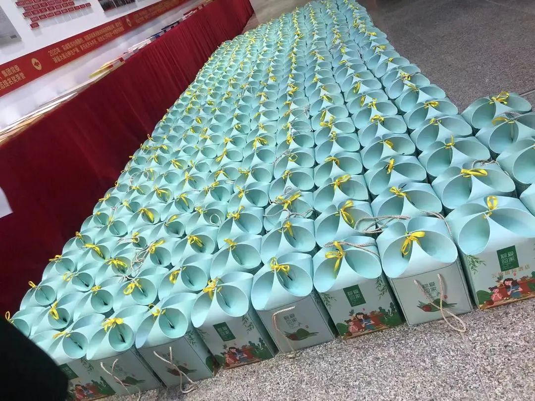 各个车间组织人员领取节日祝福。一粒粒糯米代表着一颗颗爱心,一片片粽叶包裹着一片片真情,在欢声笑语中,大家享受着浓厚的节日气氛,一个个脸上洋溢着幸福的微笑。